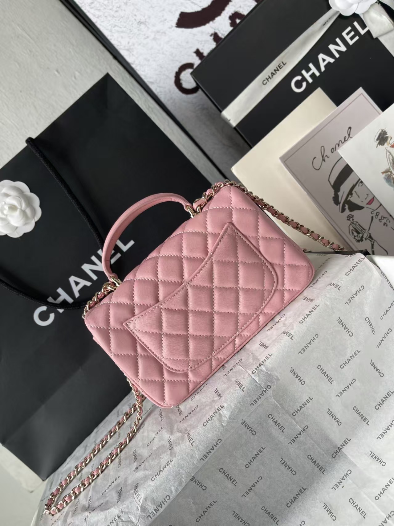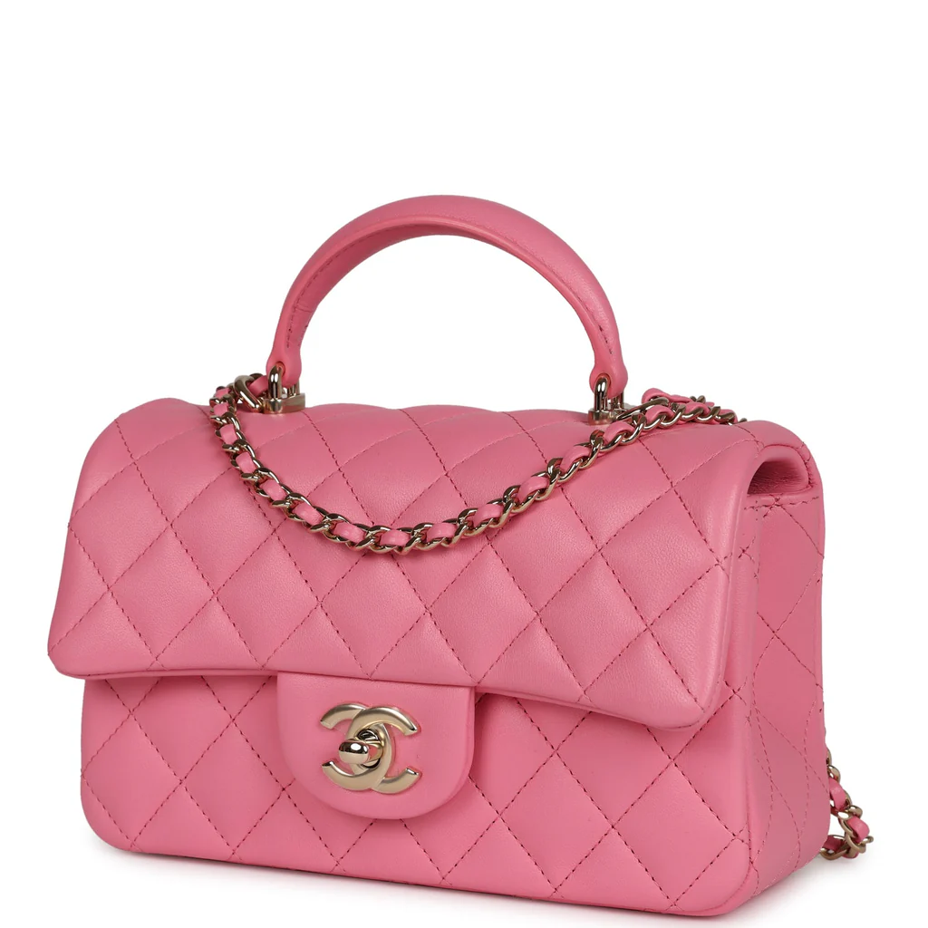 Chanel Mini Rectangular Flap with Top Handle Dark Pink Lambskin Light Gold Hardware