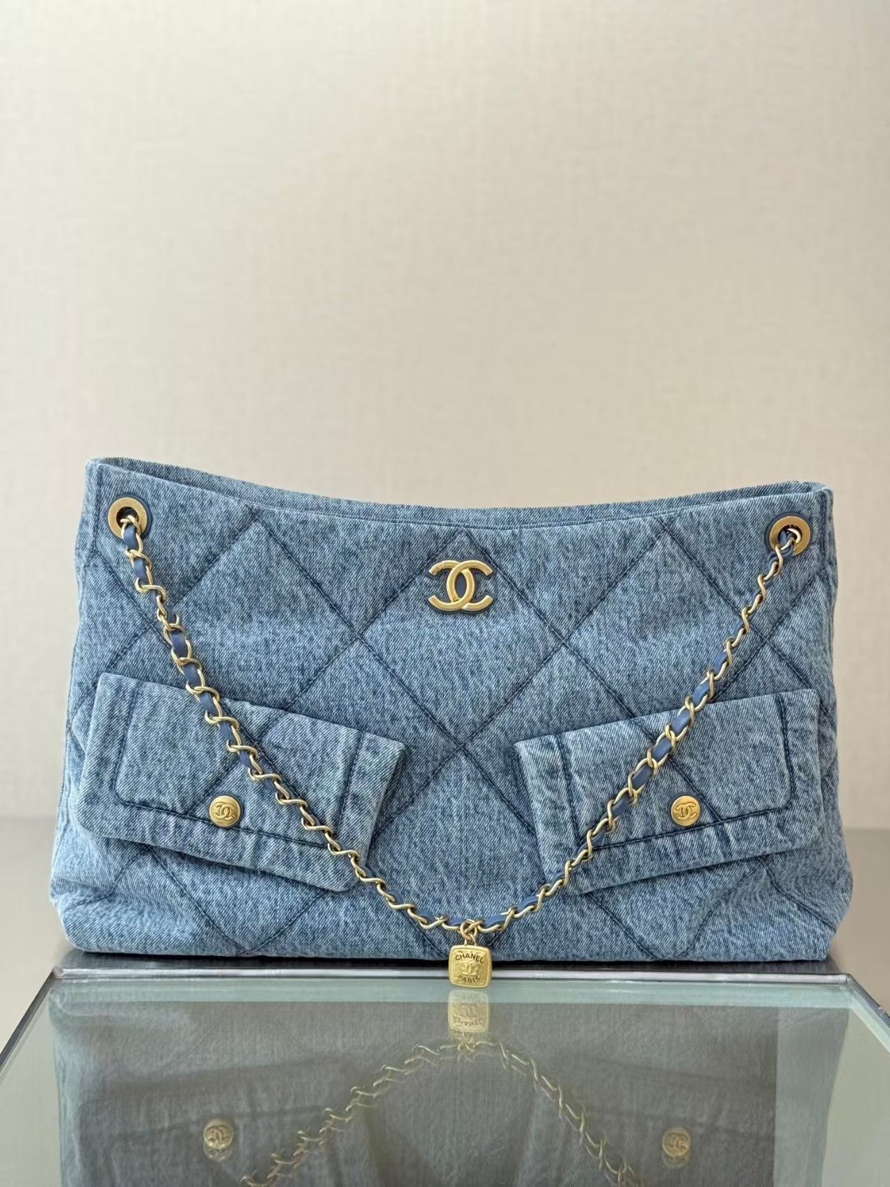 Chanel CC Denim Shopping Tote Bag