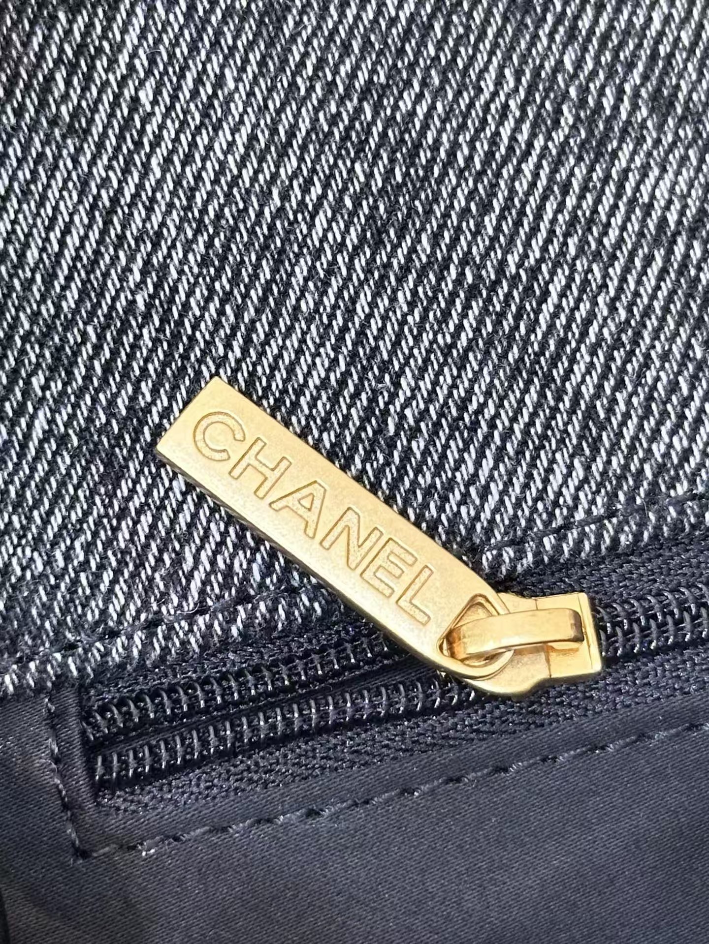 Chanel 25k Black Dark Denim Flap Bag Aged Antique Gold hardware